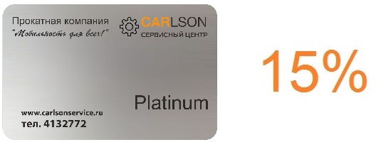 Клиентам, чей платежный баланс достиг 200 000 рублей, выдается карта PLATINUM. Она гарантирует скидку 15% на услуги нашего сервисного центра
